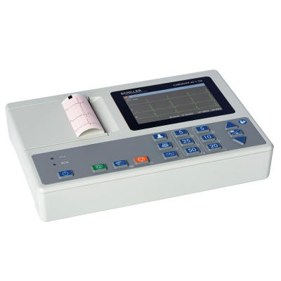 Die neuste Entwicklung von SCHILLER ist ultraportabel und verfügt über einen intuitiven, hochauflösenden 8"-Multi-Touchscreen sowie einen integrierten Thermodrucker, Akku und Wifi, womit das Gerät vielfältig vernetzt werden kann und papierlose Arbeitsabläufe bietet.